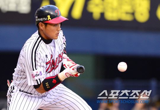 27일 잠실구장에서 프로야구 LG와 삼성의 주중 3연전 첫 번째 경기가 열렸다. 삼성은 시즌 11연승을 기록중이다. LG 채은성이 2회 무사 1,2루에서 희생 번트를 시도하고 있다. 채은성은 오늘 데뷔 첫 경기에 나섰다. 잠실=송정헌 기자 songs@sportschosun.com/2014.5.27