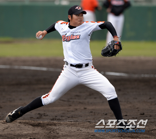 일본 오키나와에서 전지훈련 중인 한화와 LG가 21일 일본 오키나와 고친다구장에서 연습경기를 가졌다. 한화 조지훈이 힘차게 공을 던지고 있다. 오키나와(일본)=허상욱 기자 wook@sportschosun.com/2014.02.21/ |