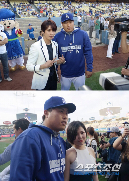 '코리안 몬스터' 류현진(27·LA 다저스)이 가수 정용화-알리와 함께 찍은 사진이 공개됐다.
