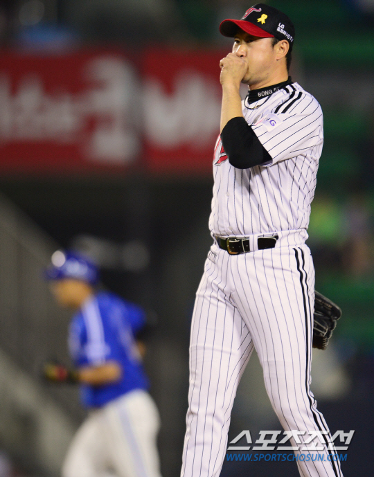 삼성 라이온즈와 LG 트윈스의 2014 프로야구 경기가 28일 잠실구장에서 열렸다. 8회초 2사 1,2루 삼성 이승엽에게 역전 스리런포를 허용한 LG 마무리 봉중근이 허탈해하고 있다. 잠실=정재근 기자 cjg@sportschosun.com/2014.05.28/