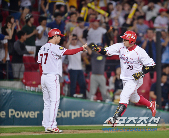 화끈한 난타전. 29일 광주 KIA-두산 전에서 벌어졌다.