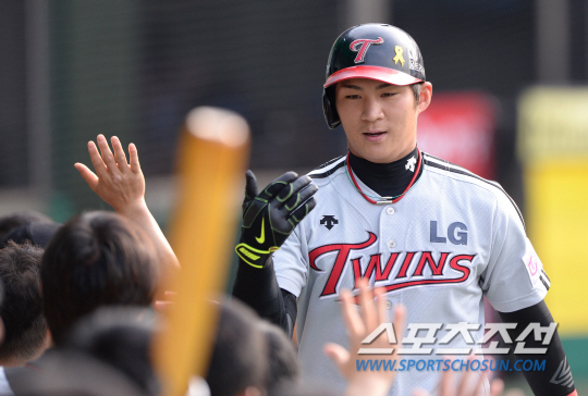 LG 오지환이 31일 1회 무사 2루에서 넥센 김영민을 상대로 중월 투런포를 날렸다. 덕아웃에 동료들과 하이파이브를 나누고 있는 오지환. 목동=송정헌 기자 songs@sportschosun.com