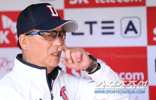 2014 프로야구 SK와이번스와 두산베어스의 경기가 15일 인천문학야구장에서 열렸다. 경기전 두산 송일수 감독이 선수들의 경기를 지켜보고 있다. 문학=최문영 기자 deer@sportschosun.com /2014.05.15/