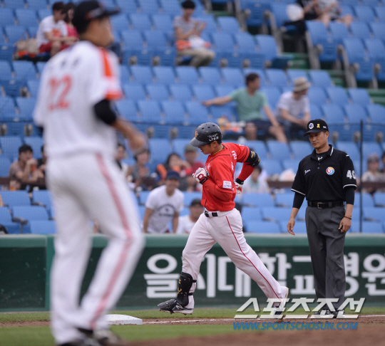 1일 오후 대전 한밭야구장에서 2014 프로야구 SK와 한화의 경기가 열렸다. 2회초 1사서 SK 박정권이 우중월 솔로홈런을 친 후 베이스를 돌고 있다. 대전=김경민 기자 kyungmin@sportschosun.com