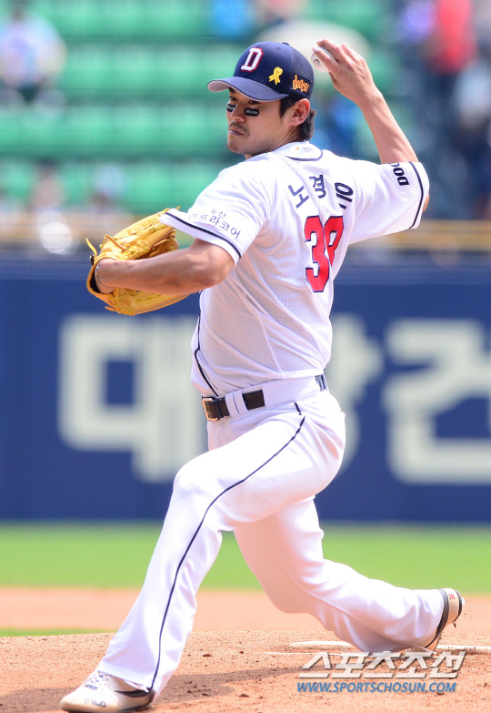 두산 베어스 노경은이 계속된 부진에서 벗어나지 못했다.