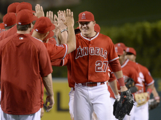 LA 에인절스의 외야수 마이크 트라웃이 3일(한국시각) 발표된 올스타 팬투표 2차 집계에서 아메리칸리그 선두를 지켰다. ⓒAFPBBNews = News1 |