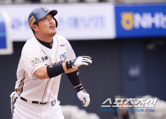 2014 프로야구 NC다이노스와 두산베어스의 경기가 27일 마산야구장에서 열렸다. NC 5회말 2사 1루 이호준이 우월 투런홈런을 치고 타구를 바라보고 있다. 마산=최문영 기자 deer@sportschosun.com