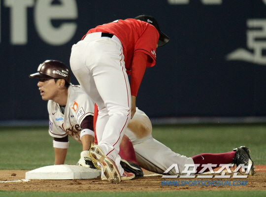 SK 와이번스와 넥센 히어로즈의 2014 프로야구 경기가 27일 목동구장에서 열렸다. 5회말 무사 2루 넥센 서건창이 3루도루를 시도해 세이프되고 있다. 목동=정재근 기자 cjg@sportschosun.com/2014.05.27/