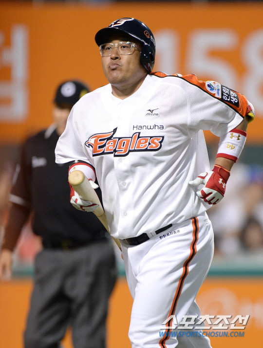 한화 이글스로 유니폼을 갈아입은 조인성이 마침내 이적후 첫 타석에 섰다.