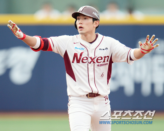 두산 베어스와 넥센 히어로즈의 2014 프로야구 경기가 8일 목동구장에서 열렸다. 1회말 2사 만루 넥센 서건창이 좌중간을 가르는 싹쓸이 2루타를 치고 2루에 간 후 타임을 요청하고 있다. 목동=정재근 기자 cjg@sportschosun.com/2014.06.08/