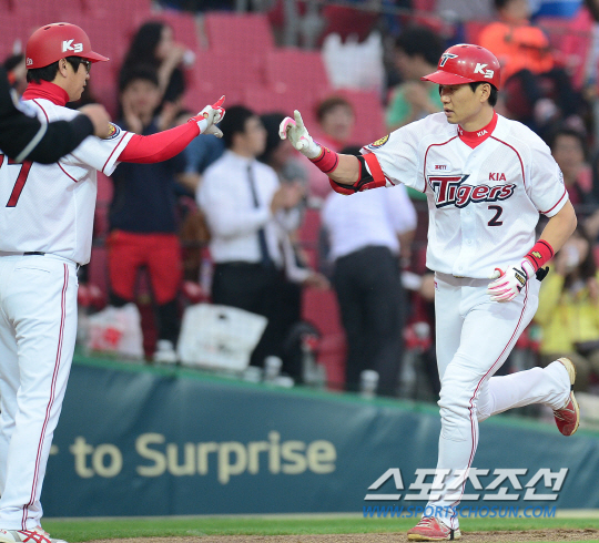 KIA 신종길이 10일 광주 한화전서 1회말 동점 솔로홈런을 터뜨렸다. 정재근 기자 cjg@sportschosun.com