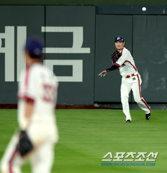 "좌익수 수비는 프로에 와서 처음 해보는 거라 긴장했다. 외야와 내야를 왔다갔다 하니 정신없었다. 조쉬벨의 파울 타구를 잡은 건 일단 잡자고 손을 뻗었는데 글러브 안으로 들어왔다."