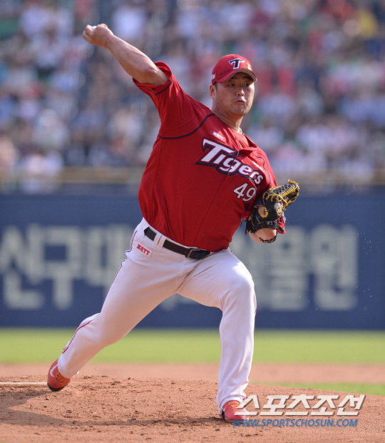 6일 오후 서울 잠실야구장에서 2014 프로야구 KIA와 LG의 경기가 열렸다. KIA 선발투수 김진우가 LG 타자들을 상대로 힘차게 볼을 던지고 있다. 잠실=김경민 기자 kyungmin@sportschosun.com