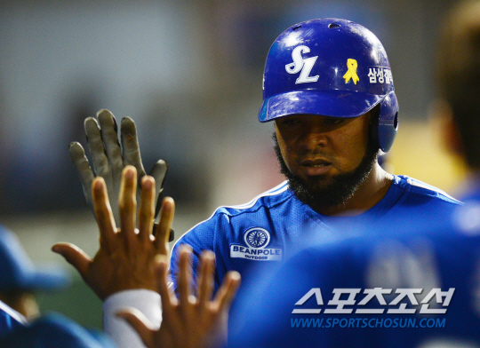 삼성 라이온즈와 넥센 히어로즈의 2014 프로야구 경기가 12일 목동구장에서 열렸다. 7회초 1사 3루 삼성 나바로가 좌월 투런포를 치고 들어와 축하를 받고 있다. 목동=정재근 기자 cjg@sportschosun.com