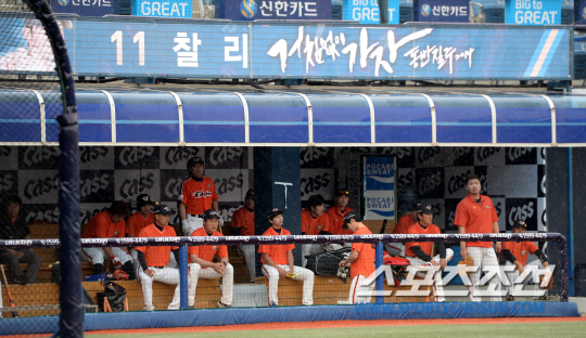 13일 창원 마산구장에서 열린 NC-한화전이 20여분 늦게 시작됐다. NC와 한화가 훈련을 교대하는 시간에 한 차례 쏟아졌던 소나기가 경기 시작 전 다시 한 번 거세게 쏟아졌다. 하지만 6시 30분경 비가 그치며 경기를 시작할 수 있었다. 방수포를 걷고 그라운드 정비 작업을 마친 뒤 경기가 시작됐다.