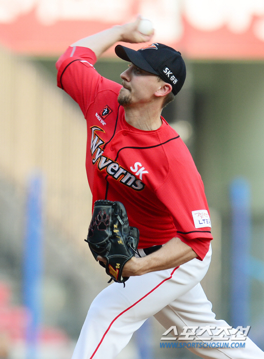 SK 외국인 투수 울프. 3연타석 홈런을 허용한게 뼈아팠다. 그 3개의 홈런을 제외하면 흠잡을 데 없는 투구였다.