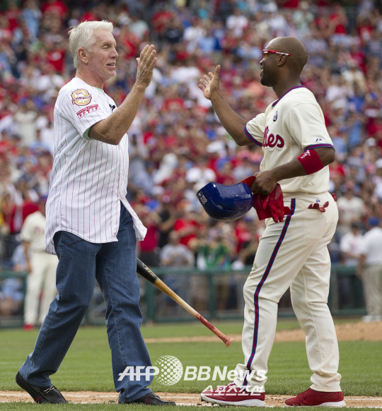 | 마이크 슈미트와 하이파이브를 하는 지미 롤린스. ⓒAFPBBNews = News1 |