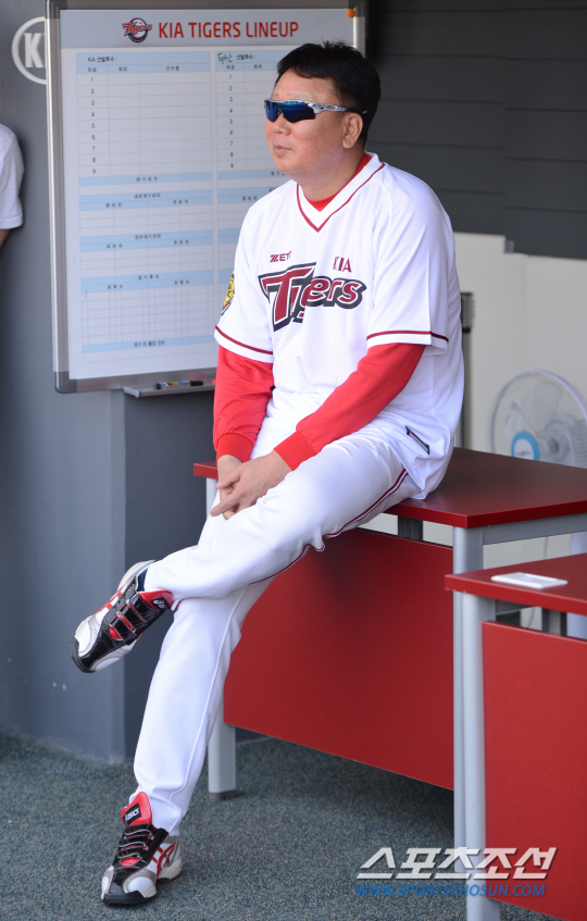 29일 오후 광주-기아챔피언스필드에서 열릴 예정인 2014 프로야구 두산과 KIA의 경기에 앞서 KIA 선동열 감독이 취재진과 이야기를 나누고 있다. 광주=김경민 기자 kyungmin@sportschosun.com / 2014.05.29.