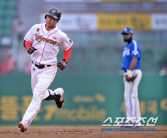 17일 오후 인천 문학야구장에서 2014 프로야구 삼성과 SK의 경기가 열렸다. 1회말 2사 2루서 SK 박정권이 중월 2점 홈런을 친 후 그라운드를 돌고 있다. 인천=김경민 기자 kyungmin@sportschosun.com