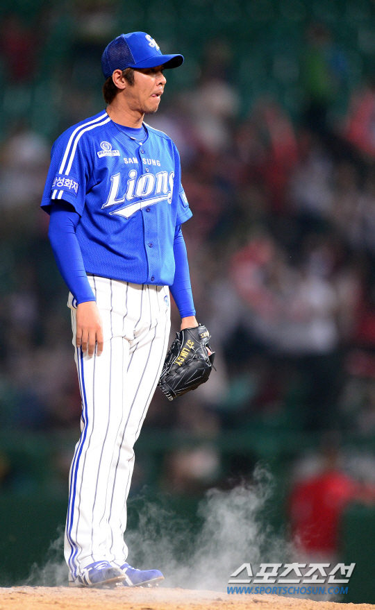 18일 인천 문학구장에서 프로야구 SK와 삼성의 주중 3연전 두 번째 경기가 열렸다. 삼성 임창용이 9회 박정권에게 2루타를 내주며 동점을 허용했다. 아쉬운 표정을 짓고 있는 임창용. 인천=송정헌 기자 songs@sportschosun.com