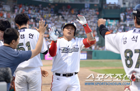 김태균이 홈런을 친 것은 지난 8일 대전 삼성 라이온즈전 이후 13일만이다. 6월 들어서만 5개의 아치를 그렸다. 시즌 7호 홈런을 때린 김태균은 타점을 47개로 늘렸다. 2회와 4회 LG 선발 리오단에게 각각 플라이 아웃으로 물러난 김태균은 6회 2사후 리오단의 145㎞짜리 직구를 받아쳐 좌중간에 떨어지는 안타를 날리며 타격감을 조율했다.