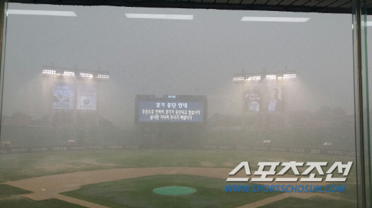 이날 오후 6시 안팎으로 폭우가 온다는 일기예보가 있었다. 이미 1회 경기 도중 우천으로 한 차례 경기가 중단된 바 있다. 하지만 10분 뒤 날씨가 개면서 곧바로 경기가 재개됐다.