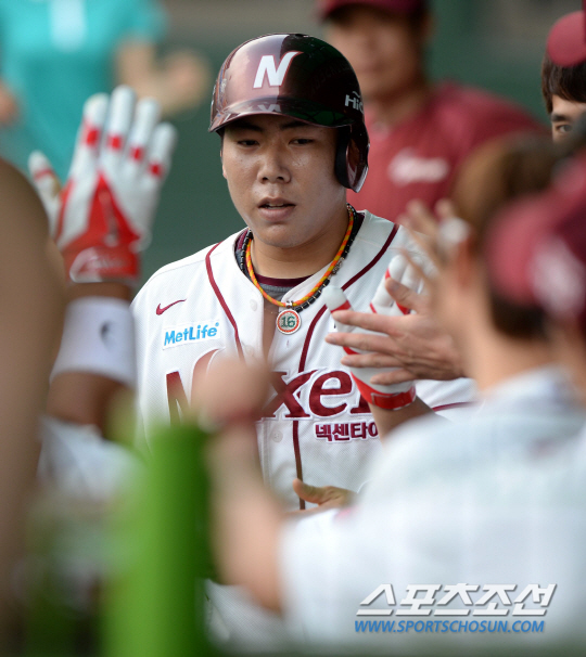 넥센과 SK의 주말 3연전 마지막 경기가 22일 목동구장에서 열렸다. 4회말 넥센 강정호가 SK 울프의 투구를 받아쳐 우측담장을 넘어가는 솔로홈런을 날렸다. 동료들과 기쁨을 나누는 강정호. 목동=허상욱 기자 wook@sportschosun.com/2014.06.22/ |