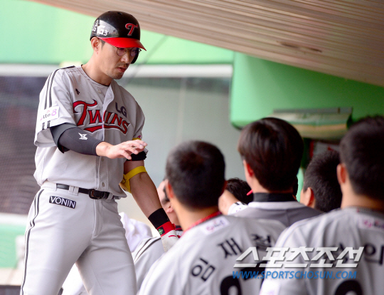 29일 인천 문학구장에서 프로야구 SK와 LG의 주말 3연전 마지막 경기가 열렸다. SK는 LG에 시리즈 2승으로 스윕에 도전한다. LG 정성훈이 2회 SK 여건욱을 상대로 솔로홈런을 날렸다. 덕아웃에서 동료들과 하이파이브를 나누고 있는 정성훈. 인천=송정헌 기자 songs@sportschosun.com