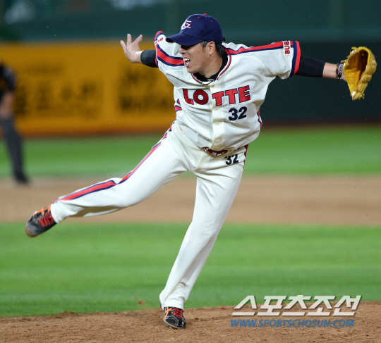 김승회는 아직 불안한 클로저다. 지난 24일 한화전에선 김태균에게 끝내기 투런을 맞고 첫 블론세이브 및 패전을 기록했다. 27일 NC전에서도 테임즈에게 사직구장 펜스를 때리는 장타를 맞고 팀 승리를 날려버릴 수 있는 아찔한 위기를 경험했다. 땀이 많은 김승회는 마치 소나기를 맞은 듯 머리와 얼굴에서 땀을 뚝뚝 흘렸다.