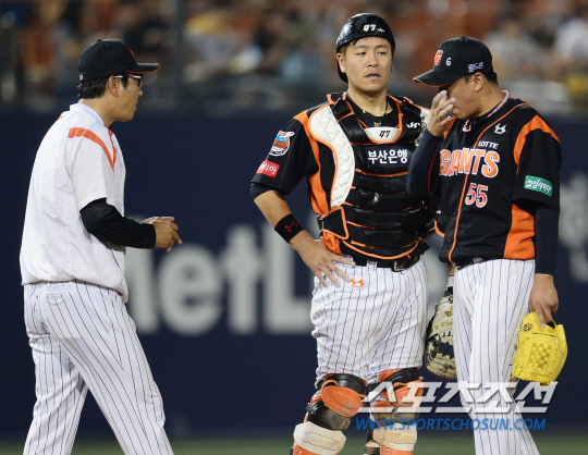 요일별 성적을 따져보면 화요일에 총 10경기를 했는데 1승8패1무로 승률이 1할1푼1리, 9팀 중 꼴찌다. 롯데의 현재 팀 승률은 5할3푼. 전체 승률에 비해 화요일 승률이 너무 나쁘다. 화요일 경기를 반타작만 했더라도 롯데는 지금 더 편안하게 4강 싸움을 했을 것이다. 참고로 화요일 승률이 가장 좋은 팀은 2위를 달리고 있는 NC 다이노스(11승3패)다. 2위는 넥센 히어로즈(9승3패1무), 3위는 삼성 라이온즈(7승3패1무)다. 화요일 승률이 높은 3팀이 상위 1~3위를 차지하고 있다. 대신 롯데는 금요일 승률(8승3패) 1위다. 3위 넥센과 2.5게임차 4위 롯데가 맞대결을 펼쳤다. 1일 목동구장에서 2014 프로야구 롯데와 넥센의 주중 3연전 첫 경기가 열렸다. 7회말 1사 강영식에 이어 등판했지만 3실점한 김사율이 강판되고 있다. 목동=정재근 기자 cjg@sportschosun.com/2014.07.01/