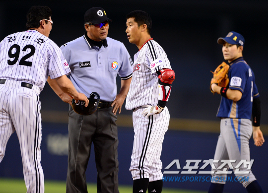 26일 잠실구장에서 프로야구 LG와 NC의 주중 3연전 마지막 경기가 열렸다. NC는 시리즈 2승으로 스윕에 도전한다. LG 임재철이 5회 1사 2루에서 내야 땅볼 타구를 날리고 1루에서 간발의 차이로 아웃 됐다. 아웃 판정에 항의하고 있는 임재철. 잠실=송정헌 기자 songs@sportschosun.com