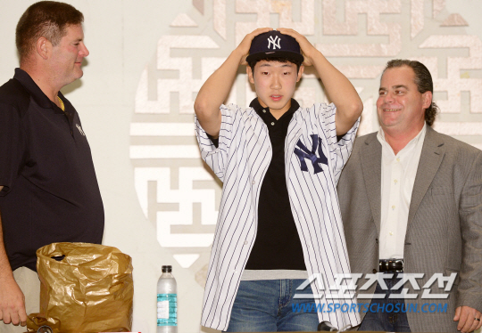 한국인 유망주 박효준(18·야탑고)이 뉴욕 양키스 입단식을 가졌다.