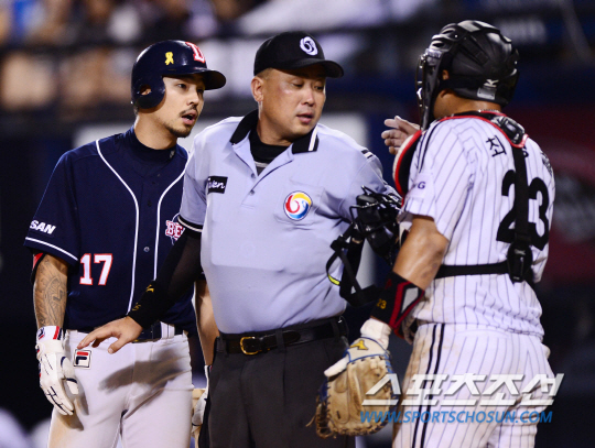 두산 오재원은 2-2로 맞선 9회초 타석에 들어서다 포수 최경철과 말다툼을 벌였다. 오재원이 타석 밖에서 다소 지체하자 최경철이 빨리 들어오라고 손짓했기 때문.