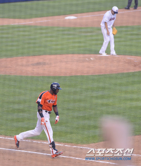 10일 오후 서울 잠실야구장에서 두산과 한화의 경기가 열렸다. 3회초 2사 1,2루서 한화 피에가 두산 노경은에게서 우중월 3점 홈런을 친 후 그라운드를 돌고 있다. 잠실=김경민 기자 kyungmin@sportschosun.com