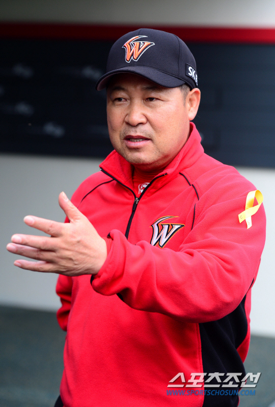29일 광주 챔피언스필드에서 프로야구 KIA와 SK의 주중 3연전 첫 번째 경기가 열렸다. KIA는 우완 한승혁을, SK는 좌완 김광현을 선발로 내세웠다. 경기 전 SK 이만수 감독이 덕아웃에서 기자들과 대화를 나누고 있다. 광주=송정헌 기자 songs@sportschosun.com/2014.04.29