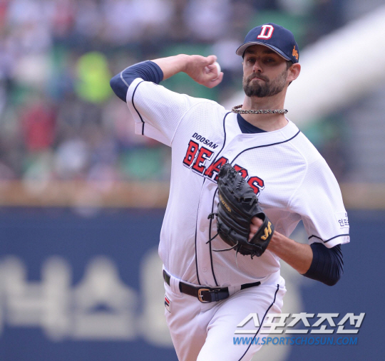 29일 오후 서울 잠실야구장에서 2014 프로야구 LG와 두산의 개막전이 열렸다. 두산 선발투수 니퍼트가 LG 타자들을 상대로 힘차게 볼을 던지고 있다. 잠실=김경민 기자 kyungmin@sportschosun.com / 2014.03.29.