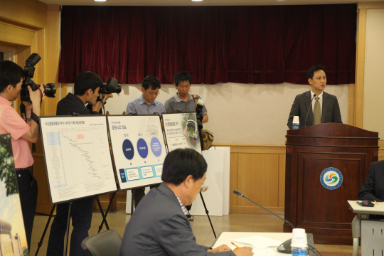 | NC 배석현 단장이 15일 오전 창원시 화합 및 균형발전 시민협의회에 참석해 구단의 입장을 발표하고 있다. 사진제공=NC다이노스 |