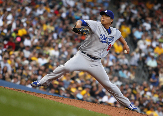 | LA 다저스 류현진이 22일(한국시각) 피츠버그 파이어리츠를 상대로 역투를 펼치고 있다. 류현진은 7이닝 동안 5안타 2실점의 완벽한 투구로 시즌 11승을 달성했다. ⓒAFPBBNews = News1 |
