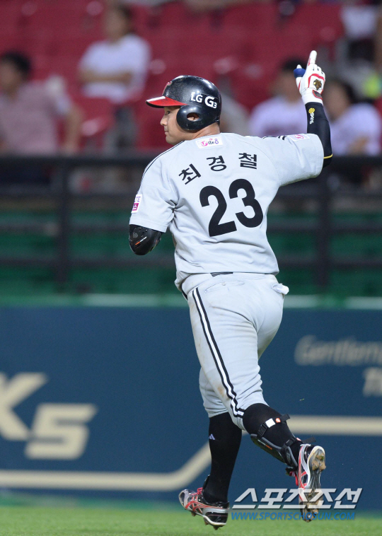 23일 오후 광주 기아챔피언스필드에서 2014 프로야구 LG와 KIA의 경기가 열렸다. 4회초 1사 만루서 LG 최경철이 좌중월 만루홈런을 친 후 그라운드를 돌고 있다. 광주=김경민 기자 kyungmin@sportschosun.com / 2014.07.23. |