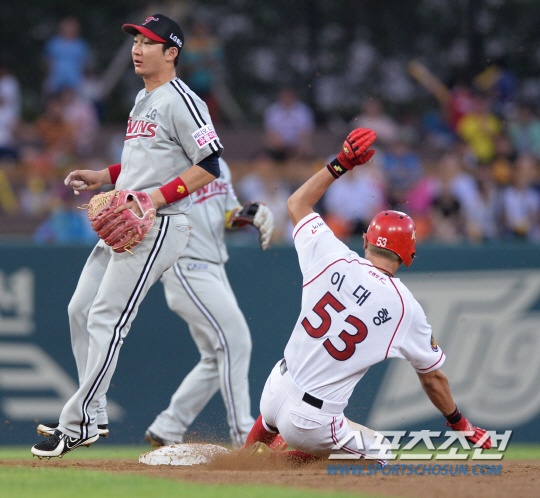 24일 오후 광주 기아챔피언스필드에서 2014 프로야구 LG와 KIA의 경기가 열렸다. 2회말 1사 1루서 1루주자 이대형이 김주찬 타석 때 2루도루에 성공하고 있다. KIA는 이 도루로 프로야구 최초 팀 통산 4000도루를 기록했다. 광주=김경민 기자 kyungmin@sportschosun.com