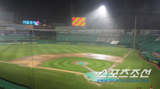 25일 인천 문학구장에서 열리던 SK 와이번스와 넥센 히어로즈의 경기가 4회말 도중 세차게 내린 비로 노게임이 선언됐다.