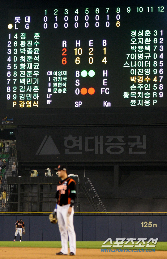 하지만 롯데는 8회 불펜이 무너졌다. 두번째 투수 김성배가 흔들렸고, 강영식을 불을 끄는데 실패했다. 오지환과 박용택에게 연속 적시타를 맞았다. 박용택의 적시타 때 2루 주자 정성훈이 홈으로 쇄도하다 포수 용덕한과 충돌했다. 2-2 동점이 됐다. 송승준의 승리 요건은 날아갔다. 이후에도 4점을 더 내줬다. 스나이더에게 2타점 적시타를 맞았고, 강영식이 폭투로 1점, 이진영에게 희생플라이로 1점을 더 내줬다. 8회에만 6실점. LG 타선의 집중력이 돋보였다.