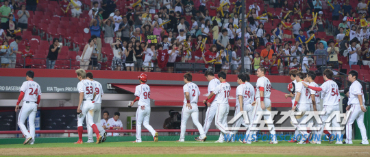 24일 오후 광주 기아챔피언스필드에서 2014 프로야구 LG와 KIA의 경기가 열렸다. 2대6으로 패배한 KIA 선수들이 관중들에게 인사한 후 덕아웃으로 향하고 있다. 광주=김경민 기자 kyungmin@sportschosun.com / 2014.07.24.