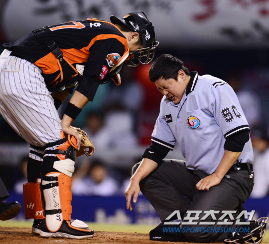 일어나서는 안될 일이 일어났다. 프로야구 구심이 경기 도중 부상으로 교체되는 불상사가 일어났다.