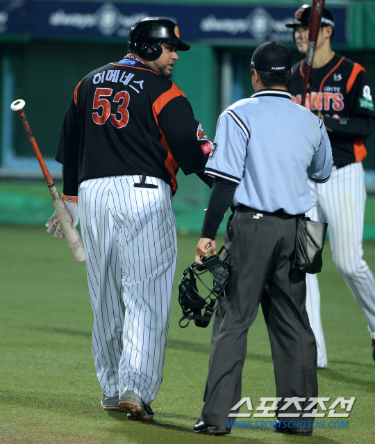 히메네스를 전력 외로 분류하고 토종 야수들로만 남은 일정을 소화하기에 히메네스의 덩치가 아깝다. 부산=노주환 기자 nogoon@sportschosun.com