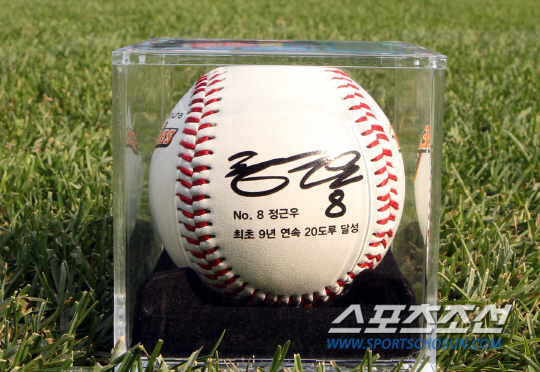 기념 상품은 'No.8 정근우 최초 9년 연속 20도루 달성'이라는 문구를 새긴 기념구로 정근우가 직접 사인을 하고 고급 케이스에 담았다. 정근우의 통산 도루 숫자인 285개의 세트를 한정 판매한다.
