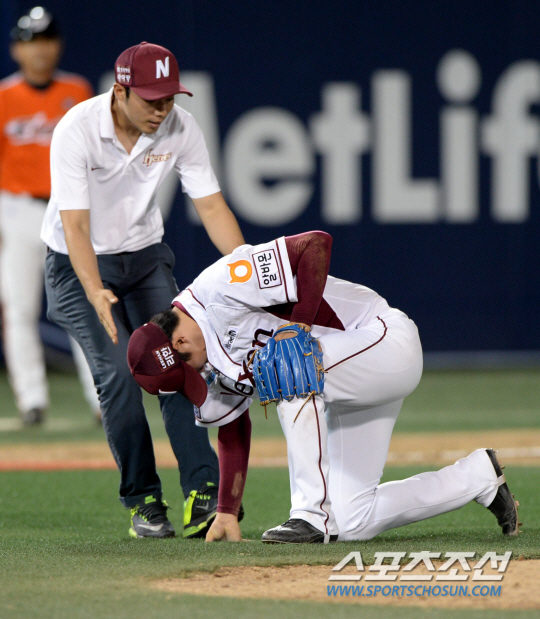 넥센 히어로즈 언더핸드 투수 김대우가 타구에 맞아 쓰러졌다.