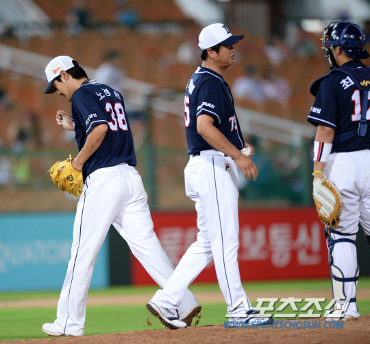노경은은 2사 만루에서 김문호를 삼진으로 돌려세우면서 이닝을 마쳤다. 노경은은 직구 제구가 잘 안 됐다. 포크볼의 위력은 상당했다.
