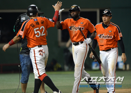 다시 앞서 간 팀은 한화였다. 7회초 2사 만루서 8번 정범모가 2타점 2루타를 터뜨려 6-4를 만들었다. 이성열의 솔로포로 6-5로 쫓긴 한화는 8회초 피에가 승리를 확신하는 스리런 포를 날렸다. 2사 1,2루서 넥센 구원투수 마정길의 118㎞ 슬라이더를 받아쳐 우측 담장을 살짝 넘겼다. 9-5가 되며 사실상 경기가 끝나는 듯했다.