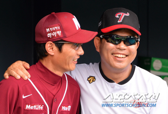 | 1일 오후 서울 잠실야구장에서 열릴 2014 프로야구 넥센과 LG의 경기에 앞서 염경엽 감독과 양상문 감독이 환하게 웃고 있다. 잠실=김경민 기자 kyungmin@sportschosun.com / 2014.08.01. |